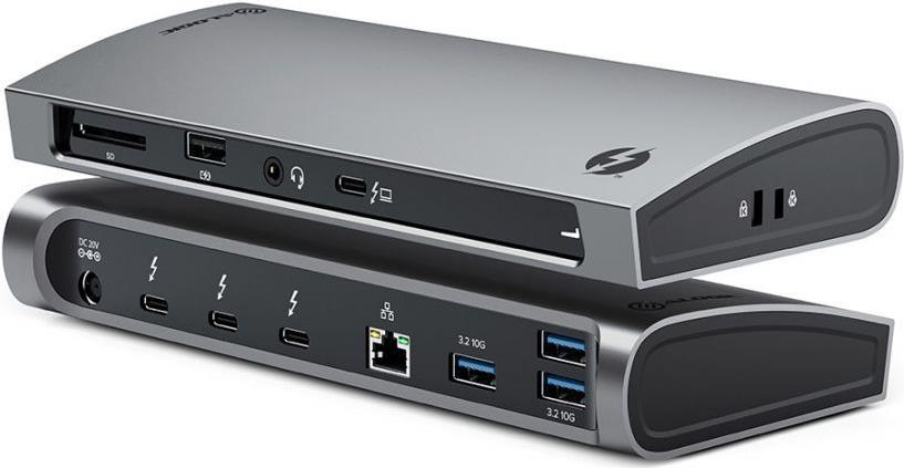 ALOGIC TB4D3TB. Übertragungstechnik: Kabelgebunden, Hostschnittstelle: Thunderbolt 4, Kopfhörer-Anschluss: 3,5 mm. Ethernet LAN Datentransferraten: 1000 Mbit/s. Produktfarbe: Schwarz, Kompatible Speicherkarten: SD, HD-Typ: 4K Ultra HD. Stromversorgung: 135 W, Stromverbrauch (max.): 96 W. Breite: 84 mm, Tiefe: 194 mm, Höhe: 30 mm (TB4D3TB)