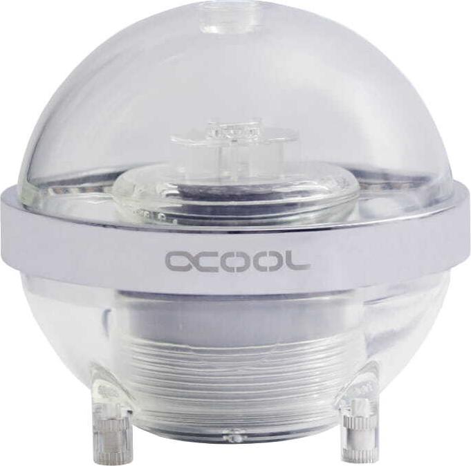 Der Alphacool Eisball Ausgleichsbehälter mit integriertem Pumpen-Top präsentiert sich in einem bisher einzigartigen Design. Mit dem Digitalen RGB Ring, welcher vollständig um den Äquator des Eisballes verläuft, ist eine vollständige und sehenswerte Ausleuchtung garantiert. Dank der vielseitigen Montagemöglichkeiten findet der Eisball in nahezu jedem System seinen Platz. Einzigartiges DesignDer Alphacool Eisball ist der erste Ausgleichsbehälter in Form einer Kugel. Dadurch ist er in jedem wassergekühlten System ein absoluter Blickfang. Durch die 22 digitalen RGB LEDs, welche einmal vollständig um den Äquator des Eisballes herumlaufen, lässt sich der Eisball perfekt beleuchten. Die adressierbaren digitalen RGB LEDs sind dabei in einem edlen verchromten Ring untergebracht, der die hervorragende Optik zusätzlich unterstreicht. Ein Digital RGB Controller ist selbstverständlich Teil des Zubehörs. Das Alphacool Logo ist dabei im matten Silber gehalten und passt sich dadurch perfekt an die Gesamtoptik an.Vielseitige MontagemöglichkeitenIm Lieferumfang sind eine Klettmatte und zwei unterschiedliche Montageplatten enthalten. Eine Montageplatte dient zur Montage des Eisballes auf Radiatoren und Lüfterplätzen mit dem Format 120 oder 140 mm. Die zweite Montageplatte bietet gleich mehrere Möglichkeiten für eine Montage an. Man kann eine Seite der Klettverschlussmatte aufkleben und die andere an einem beliebigen Platz im Gehäuse. So kann man den Eisball ganz simple auf der im Gehäuse liegende Klettverschlussmatte kleben und bei Bedarf auch wieder davon entfernen. Das Montageblech bietet aber auch Montagelöcher an, die man zur Montage auf einem 2,5“ SSD Platz verwenden kann. Die äußeren Montagebohrungen sind passend, um den Eisball auf der universalen Alphacool Pumpenbefestigung zu montieren. Im Zusammenspiel mit der VPP755 kann der Alphacool Eisball sogar auf dem Kopf betrieben werden. Allerdings nur und ausschließlich mit der Alphacool VPP755 Pumpe. Standard Laing D5 Pumpen können aufgrund des sphärischen Lagers nicht auf dem Kopf betrieben werden.Wo ist die Pumpe?Die Pumpe verschwindet vollständig im Inneren des Eisballes. Sie wird von unten in den Eisball eingeführt und mit einer speziellen Pumpenhalterung befestigt. Für den Einbau sind alle Alphacool eigenen D5 Pumpen wie zum Beispiel die VPP655 und VPP755 sowie alle originalen Laing D5 Pumpen geeignet.Ist der Eisball Silent tauglich?Da die Pumpe im Inneren des Eisballes montiert wird, ist sie fast vollständig vom Ausgleichsbehälter und damit auch vom Wasser umschlossen und wirkt wie eine Dämmung. Damit die Vibrationen nicht an das Gehäuse übertragen werden, liegen dem Eisball Entkoppler bei, die zur Montage des Eisballes genutzt werden können. Beide Faktoren zusammen machen den Eisball zu einem echten Silent-Produkt.Befüllung und Anschlüsse?Der Eisball besitzt auf der Oberseite einen Fillport über den man den Eisball schnell und einfach mit einer Spritzflasche befüllen kann. Das Fassungsvermögen des Eisballes liegt bei maximal 700 ml. Auf der Rückseite des Eisballes befindet sich der IN- und Out-Anschluss mit jeweils einem G ¼“ Gewinde. Es können entweder Alphacool Schlauchanschlüsse für 16 mm Schläuche angeschraubt werden oder 13 mm HardTube Anschlüsse. Für 16 mm HardTube Anschlüsse wird eine Verlängerung oder ein Winkelstück benötigt.Der Eisball ist also nicht nur ein von der Optik geprägtes Produkt, sondern ist auch in der Funktionalität und der technischen Umsetzung einzigartig.Hauptmerkmale