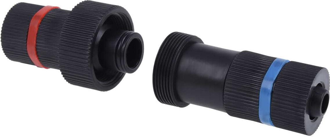 Alphacools Schnellverschlusskupplungssets wurden aus Gründen der Sicherheit neu entwickelt. Aus diesem Grund haben diese Kupplungen keinen "Klick"-Mechanismus sondern werden mit einer Art Überwurfmutter verschraubt. Die Kupplungen lassen sich so nicht mehr versehentlich entriegeln.Durch den Einbau dieser Kupplungen wird der Durchfluss nur sehr gering bis gar nicht beeinträchtigt. Bei Entriegelung dichten beide Seiten der Kupplung komplett ab.Auf beiden Seiten befindet sich ein Anschluss für 11/8 Schlauch.Hauptmerkmale