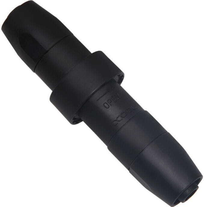 Die Alphacool HF Schnellverschlusskupplung TPV stammt aus der Alphacool Enterprise Solutions Produktreihe und wurde speziell für die Alphacool TPV Schläuche entwickelt. Besonderen Wert wurde auf eine hohe Zugfestigkeit und Sicherheit gelegt.Enterprise Solution? Alphacool bietet spezielle Wasserkühlungsprodukte für Server und Workstations im B2B Bereich an. In diesem Bereich wird natürlich hohen Wert auf Sicherheit gelegt. Für die Schnellverschlusskupplung waren daher drei Faktoren besonders wichtig: Ein sicherer Verschluss, hohe Zugfestigkeit der montierten Schläuche und ein besonders niedriges Gewicht.Die besonders hohe Zugfestigkeit wurde durch eine Kralle erreicht, die im Anschlussbereich des Schlauches untergebracht wurde. Wenn der Schlauch montiert wird, greift diese Kralle in den Schlauch und hält ihn fest. Dadurch wird das Abziehen des Schlauches unter normalen Umständen unmöglich.Schraubverschluss statt Klickverschluss?Die üblichen Schnellverschlüsse arbeiten mit einem Klickverschluss. Der Alphacool HF Schnellverschluss verwendet eine Lösung bei der die beiden Komponenten miteinander verschraubt werden. Dadurch ist es ausgeschlossen, dass durch eine falsche Bewegung der Schnellverschluss geöffnet wird. Der Schnellverschluss kann sich also nicht einfach durch Erschütterungen oder Bewegungen lösen.Nylon als Material?Statt wie üblich die Anschlüsse aus Messing zu gestalten, wurden diese speziell für die Enterprise Solutions Produktreihe aus Nylon gefertigt. In wassergekühlten Servern und Workstations müssen alle Komponenten leicht austauschbar gehalten werden. Daher werden in der Regel alle Komponenten mit Schnellverschlüssen versehen. Das bedeutet bei einem Grafikkarten-Renderserver werden sehr viele Schnellverschlüsse benötigt. Da der Aufbau sehr eng sein kann, dürfen die Schnellverschlüsse keine Kurzschlüsse verursachen, falls sie doch mal in Kontakt mit bestimmten Bauteilen kommen. Daher setzt Alphacool auf Nylon. Es ist extrem leicht, sehr wiederstandfähig und äußerst langlebig.Durchfluss und DichtungDurch eine besonders große Öffnung von 9 mm im Bereich des Wasserflusses und einem besonderen inneren Verschlussmechanismus, kann das Wasser ohne großen Wiederstand durch den Schnellverschluss fließen. Besonders im Bereich Enterprise Solutions, wo in der Regel sehr viele Schnellverschlüsse innerhalb eines Systems zum Einsatz kommen, wäre ein zu hoher Widerstand ein massives Problem in Bezug auf die Pumpen. Ein zu hoher Wiederstand würde mehr Pumpen, mehr Druck und damit auch mehr Probleme bei der Anwendung zur Folge haben. Das ist natürlich nicht gewünscht. Auch bei diesem Schnellverschluss wird eine Doppel-Dichtung verwendet, um höchste Dichtigkeit und Sicherheit zu gewährleisten.Hauptmerkmale