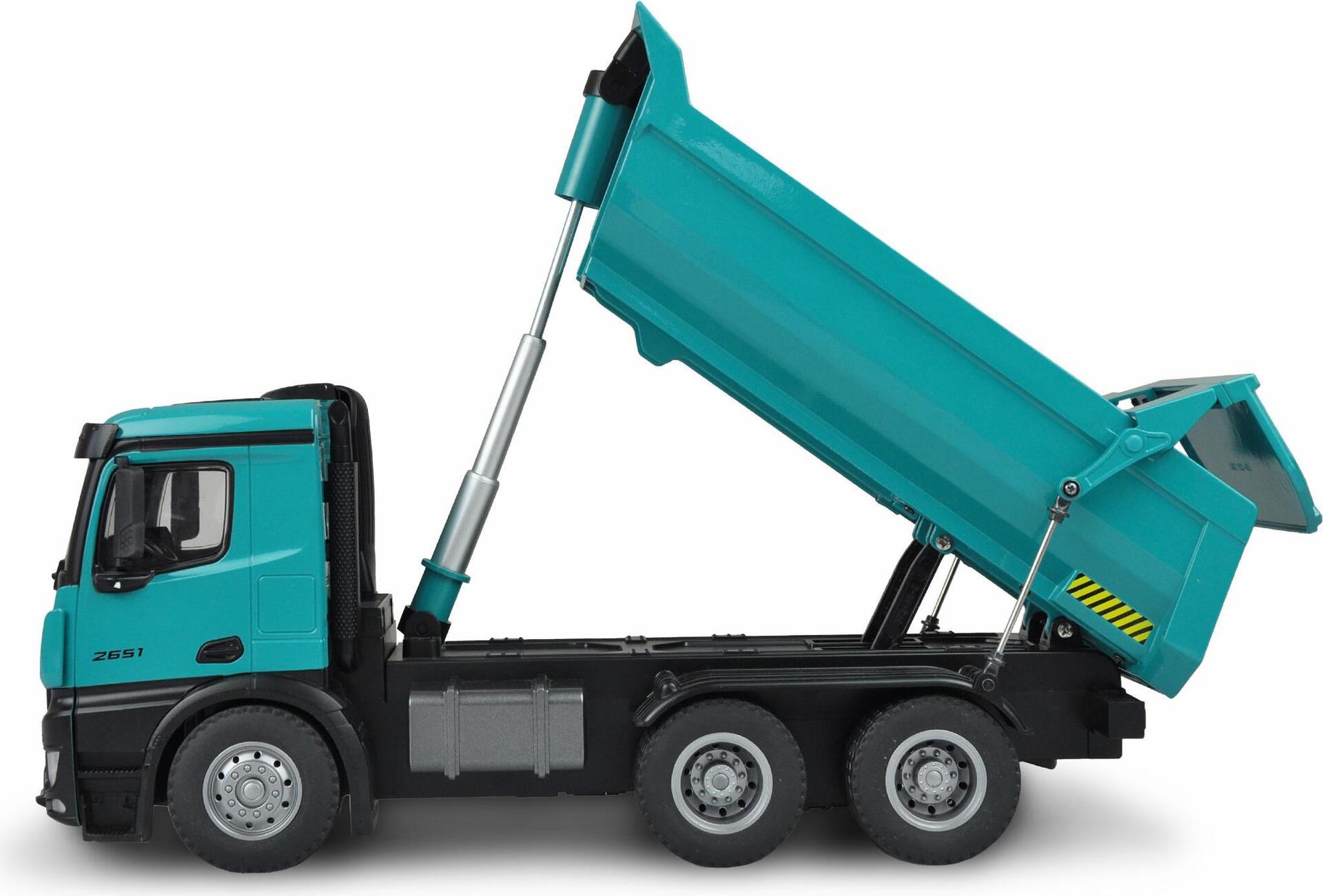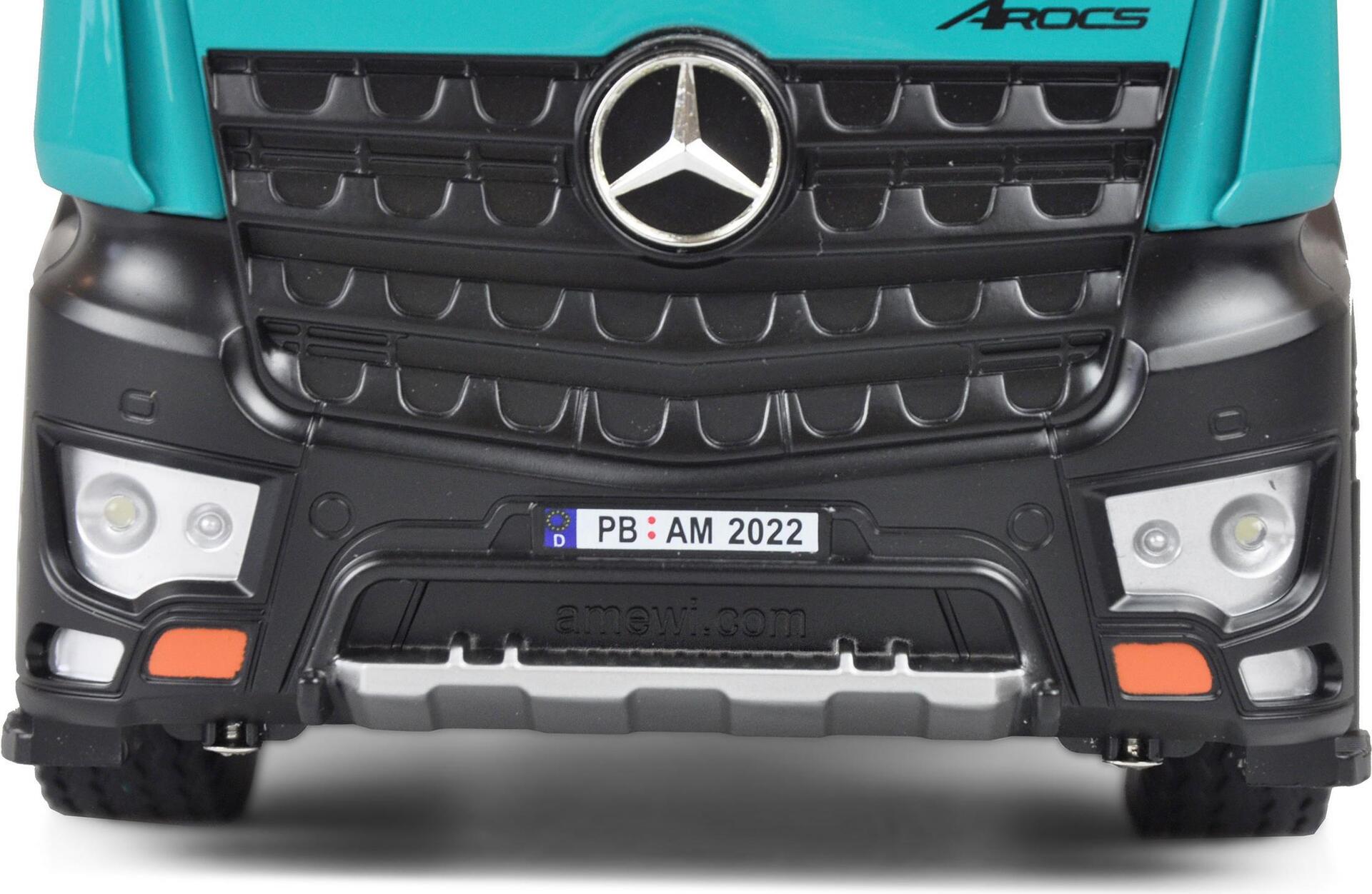 Großartiges Scale Modell eines Mercedes Arocs Kippers in exklusiver Petrol Lackierung passend zu unseren Vollmetallbaggern und Radladern. (22500 / 22501) Arocs ist die Bezeichnung der berühmten LKW-Baureihe der Marke ...