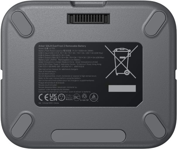 Der herausnehmbare Akku Anker SOLIX wurde mit Lithium-Eisenphosphat-Technologie entwickelt und bietet eine Kapazität von 288 Wh. Diese tragbare Stromquelle unterstützt dank ihrer zahlreichen Ausgangsanschlüsse, darunter ein 4-poliger USB-Typ-A-Anschluss und ein 24-poliger USB-C-Anschluss, verschiedene Geräte und liefert eine Ausgangsleistung von bis zu 60 W bzw. 12 W.