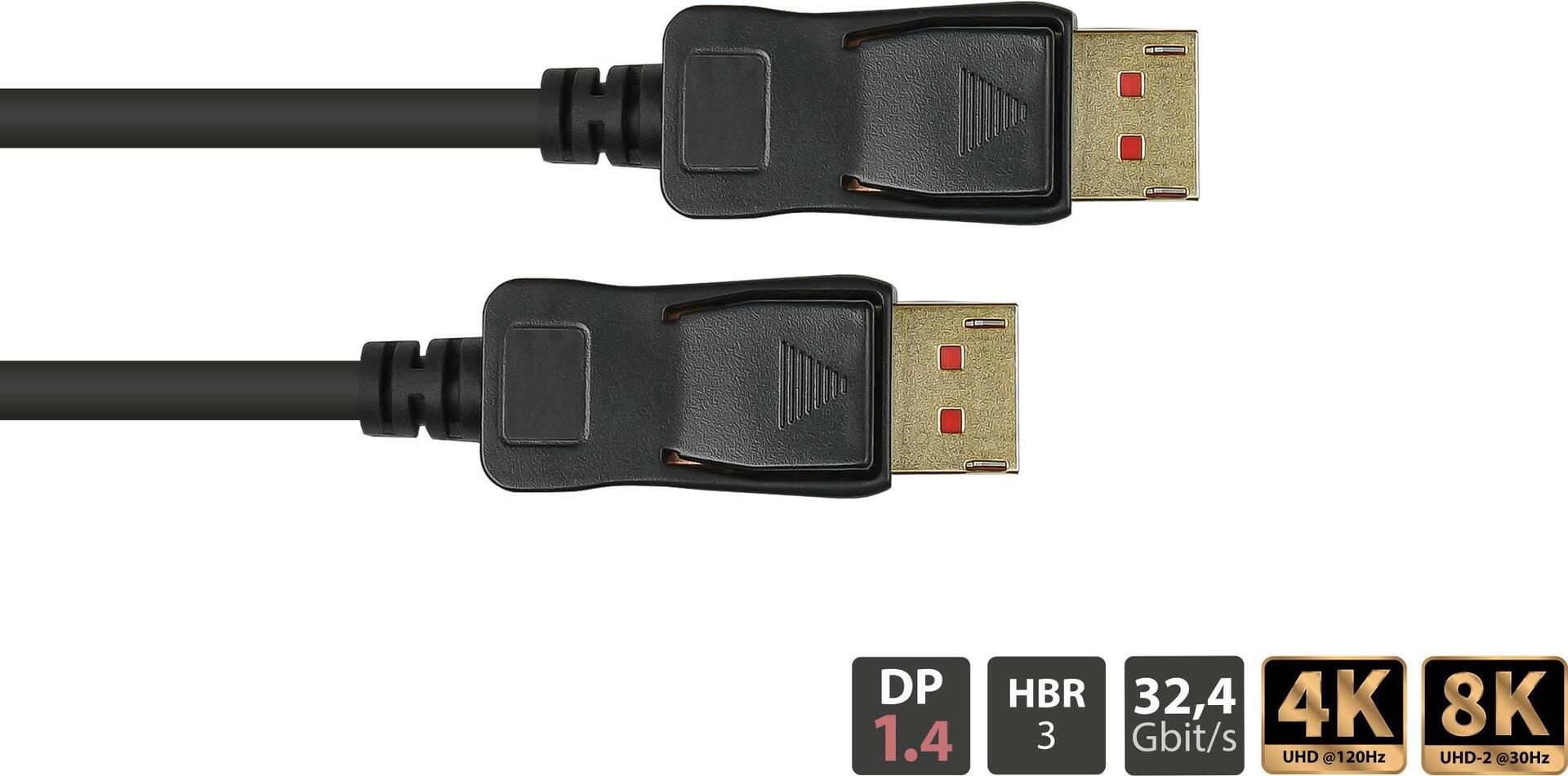 Das DisplayPort 1.4 Anschlusskabel von Good Connections® rt eine gleichbleibend hohe Signalübertragung bis 8K / UHD-2 dank der Kombination aus einem hochwertigen Kabelaufbau mit 3-facher Kabelschirmung und Steckern mit ...
