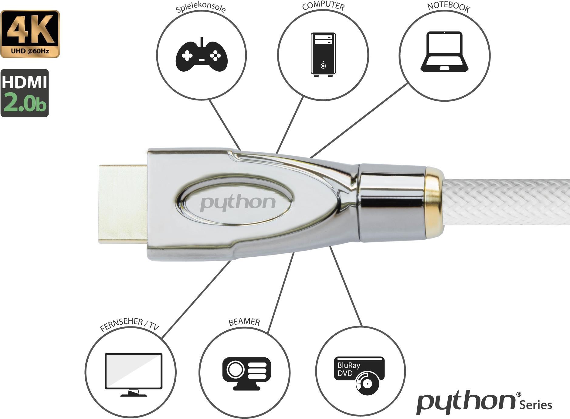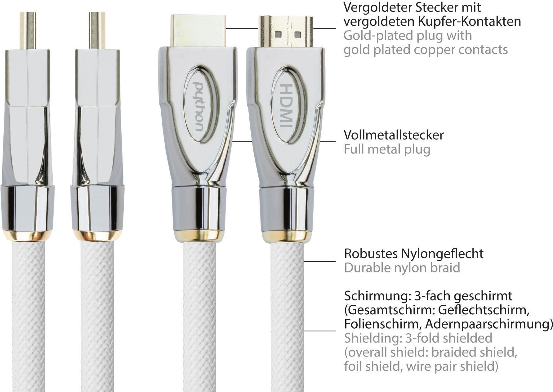 Anschlusskabel HDMI® 2.0 Kabel 4K2K / UHD 60Hz, 24K vergoldete Kontakte, OFC, Nylongeflecht weiß, 0,5m, PYTHON® Series (GC-M0160)