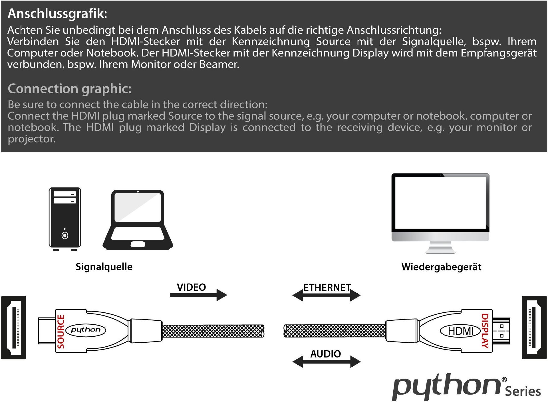 Dieses HDMI-Kabel unterstützt Auflösungen bis zu 4096 x 2160 Pixel. Die perfekte Verbindung für Ihr neues UHD Display, Ihren neuen Monitor oder Fernseher.
