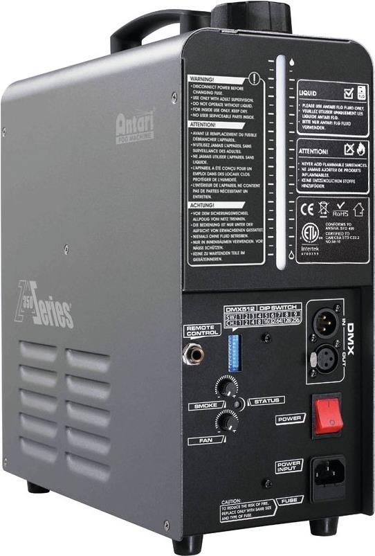 ANTARI Z-350 DunstnebelmaschineExtrem effiziente Dunstnebelmaschine: 1 Tankfüllung ermöglicht über 7 Stunden Dunsterzeugung bei voller AusstoßleistungFüllstandsanzeigeIntegrierte DMX-Schnittstelle (Funktionen: Nebelmenge und Lüftergeschwin
