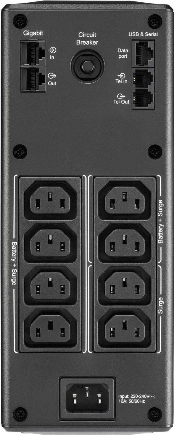 | Besonderheiten | Hörbarer Alarm, LCD Anzeige, Automatische Spannungsregelung (Automatic Voltage Regulation, AVR), Überlastungsschutz, Datenleitungsschutz |