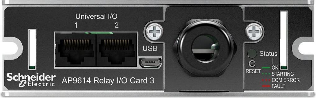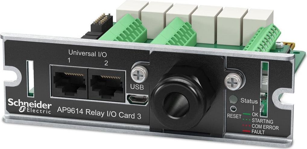 Die I/O Karte mit potenzialfreiem Kontakt (Dry Contact) bietet 6 konfigurierbare Ausgangsrelais und 4 Eingangskontakte zur Überwachung externer Auslöser und zur Auslösung von Aktionen an externen Geräten. Die 2 universellen I/O-Anschlüsse (UIO) unterstützen optionale Umgebungssensoren und das Dry Contact I/O-Zubehör. Das I/O-Zubehör für potentialfreie Kontakte bietet 2 zusätzliche Schnittstellen für potentialfreie Kontakteingänge und Relaisausgänge. Schließen Sie das mitgelieferte Micro-USB-Kabel an die Karte und einen PC an, um das dynamische Web-UI zu nutzen. Konfigurieren Sie USV-Einstellungen und Aktionen von Ausgangsrelais, Eingangskontakten und Umgebungssensoren auf der Grundlage von Statusänderungen oder USV-Ereignissen.