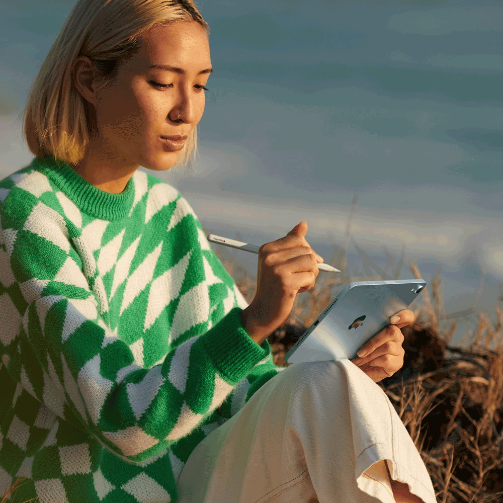Apple iPad mini. Gebaut für Apple Intelligence [1]. Es ist unglaublich tragbar und leistungsstark, mit dem ultraschnellen A17 Pro Chip und einem 8,3-Zoll Liquid Retina Display [2]. Und es funktioniert mit dem Apple Pencil Pro, sodass du überall lernen, arbeiten, spielen und kreativ sein kannst.