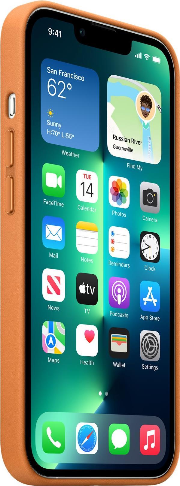 Das Leder Case mit MagSafe wurde von Apple speziell für dein iPhone 13 Pro entwickelt. Es schützt genauso gut, wie es aussieht, und sorgt dabei für noch mehr Stil.Aus speziell gegerbtem, veredeltem Leder hergestellt, fühlt sich die Außenseite weich an und bekommt mit der Zeit eine natürliche Patina. Das Case dockt schnell und genau richtig an. Es passt perfekt über dein iPhone und bewahrt seine dünne Form.Mit integrierten Magneten, die sich perfekt am iPhone 13 Pro ausrichten, lässt sich das Case fast schon magisch befestigen und abnehmen. Die perfekt ausgerichteten Magnete machen kabelloses Laden schneller und einfacher als je zuvor. Lass dein iPhone beim Laden einfach im Case und docke dein MagSafe Ladegerät an oder leg es auf dein Qi zertifiziertes Ladegerät.Wie jedes von Apple entwickelte Case durchläuft es im Laufe des Design- und Fertigungsprozesses Tausende von Teststunden. Deshalb sieht es nicht nur großartig aus, sondern ist auch dafür gemacht, dein iPhone vor Kratzern und bei Stürzen zu schützen.Produkttext[/head]Das Leder Case mit MagSafe wurde von Apple speziell für dein iPhone 13 Pro entwickelt. Es schützt genauso gut, wie es aussieht, und sorgt dabei für noch mehr Stil.Aus speziell gegerbtem, veredeltem Leder hergestellt, fühlt sich die Außenseite weich an und bekommt mit der Zeit eine natürliche Patina. Das Case dockt schnell und genau richtig an. Es passt perfekt über dein iPhone und bewahrt seine dünne Form.Mit integrierten Magneten, die sich perfekt am iPhone 13 Pro ausrichten, lässt sich das Case fast schon magisch befestigen und abnehmen. Die perfekt ausgerichteten Magnete machen kabelloses Laden schneller und einfacher als je zuvor. Lass dein iPhone beim Laden einfach im Case und docke dein MagSafe Ladegerät an oder leg es auf dein Qi zertifiziertes Ladegerät.Wie jedes von Apple entwickelte Case durchläuft es im Laufe des Design- und Fertigungsprozesses Tausende von Teststunden. Deshalb sieht es nicht nur großartig aus, sondern ist auch dafür gemacht, dein iPhone vor Kratzern und bei Stürzen zu schützen.Dieses Case wurde aus hochwertigem, weichem Leder gefertigt und schützt dein iPhone. Leder ist ein natürliches Material und kann, wie bei einem edlen Ledergürtel, mit der Zeit Falten, Tragespuren oder eine Patina bekommen. Bei der Verwendung von MagSafe Zubehör können leichte Abdrücke entstehen. Falls du das vermeiden möchtest, empfehlen wir, ein iPhone 13 Pro Silikon Case oder Clear Case zu verwenden.[head]Hauptmerkmale