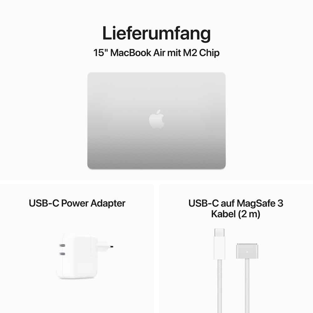 APPLE MacBook Air 38,91cm 15.3" Apple M2 Chip 8-Core CPU und 10-Core GPU 8GB gem. RAM 512GB SSD DE - Silber (MQKT3D/A)