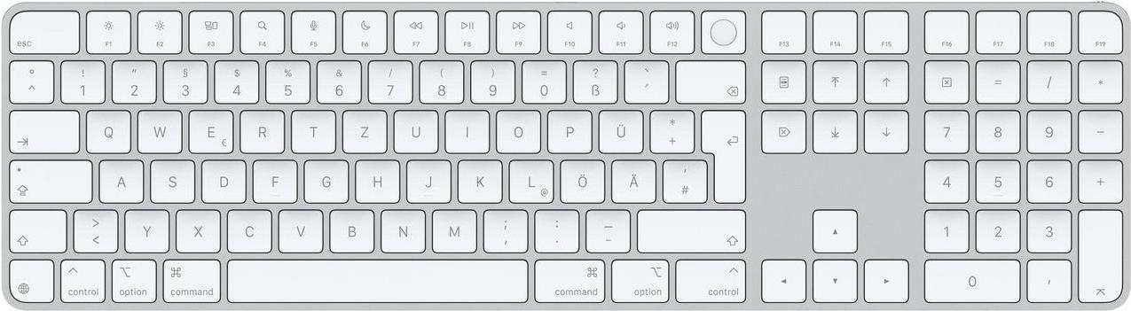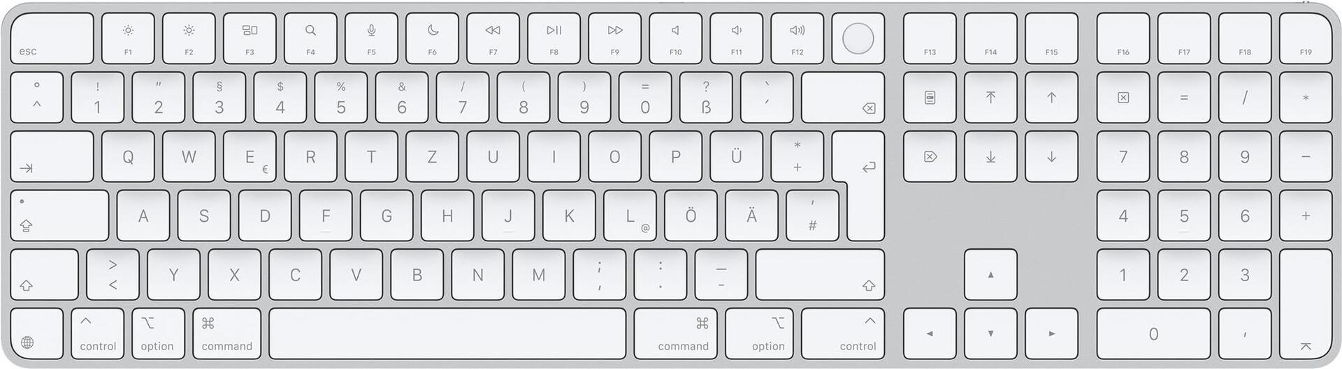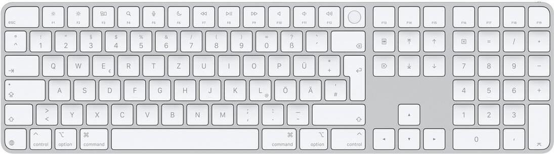 Apple Magic Keyboard with Touch ID and Numeric Keypad - Tastatur - USB-C - kabellos - Bluetooth - QWERTZ - Deutsch - weiße Tasten (MXK73D/A)