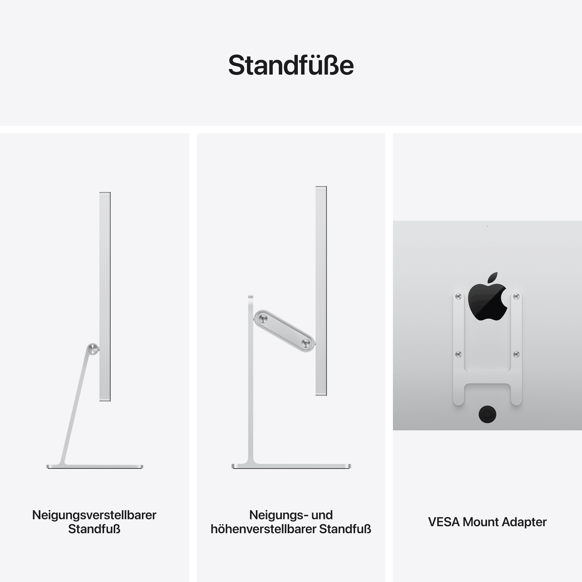 Wir stellen vor: Studio Display. Ein beeindruckendes 27\" 5K Retina Display (Bildschirmgröße wird diagonal gemessen) mit einer 12-Megapixel-Kamera mit Center Stage, Mikrofonen in Studioqualität und einem Soundsystem mit sechs Lautsprechern. Passt wunderbar zu jedem Mac.Hauptmerkmale