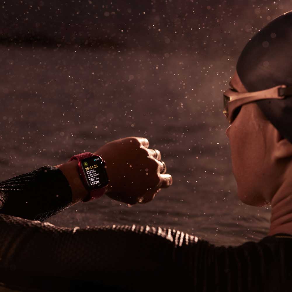 Die Apple Watch Series 9 hilft dir, aktiv, gesund, sicher und in Verbindung zu bleiben. Mit der Doppeltipp Geste, einer magischen neuen Art, mit deiner Apple Watch zu interagieren, einem noch helleren Display, schnellerem On Device Siri und der Genauen Suche für das iPhone.