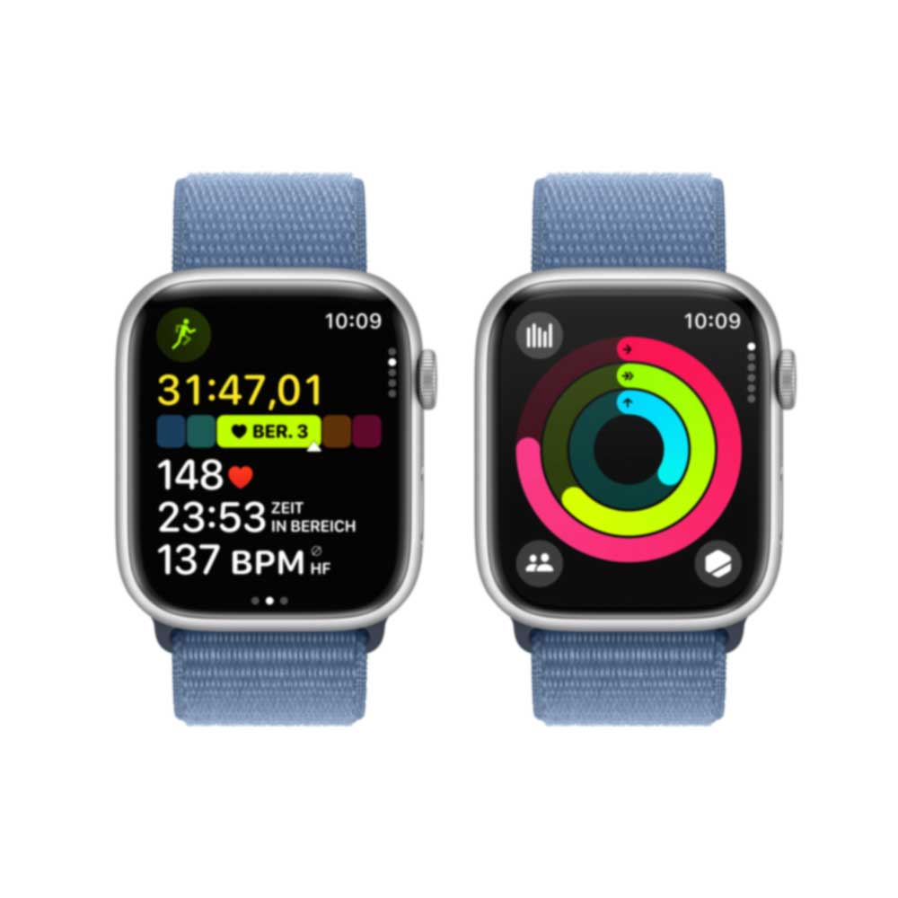 Die Apple Watch Series 9 hilft dir, aktiv, gesund, sicher und in Verbindung zu bleiben. Mit der Doppeltipp Geste, einer magischen neuen Art, mit deiner Apple Watch zu interagieren, einem noch helleren Display, schnellerem On Device Siri und der Genauen Suche für das iPhone.