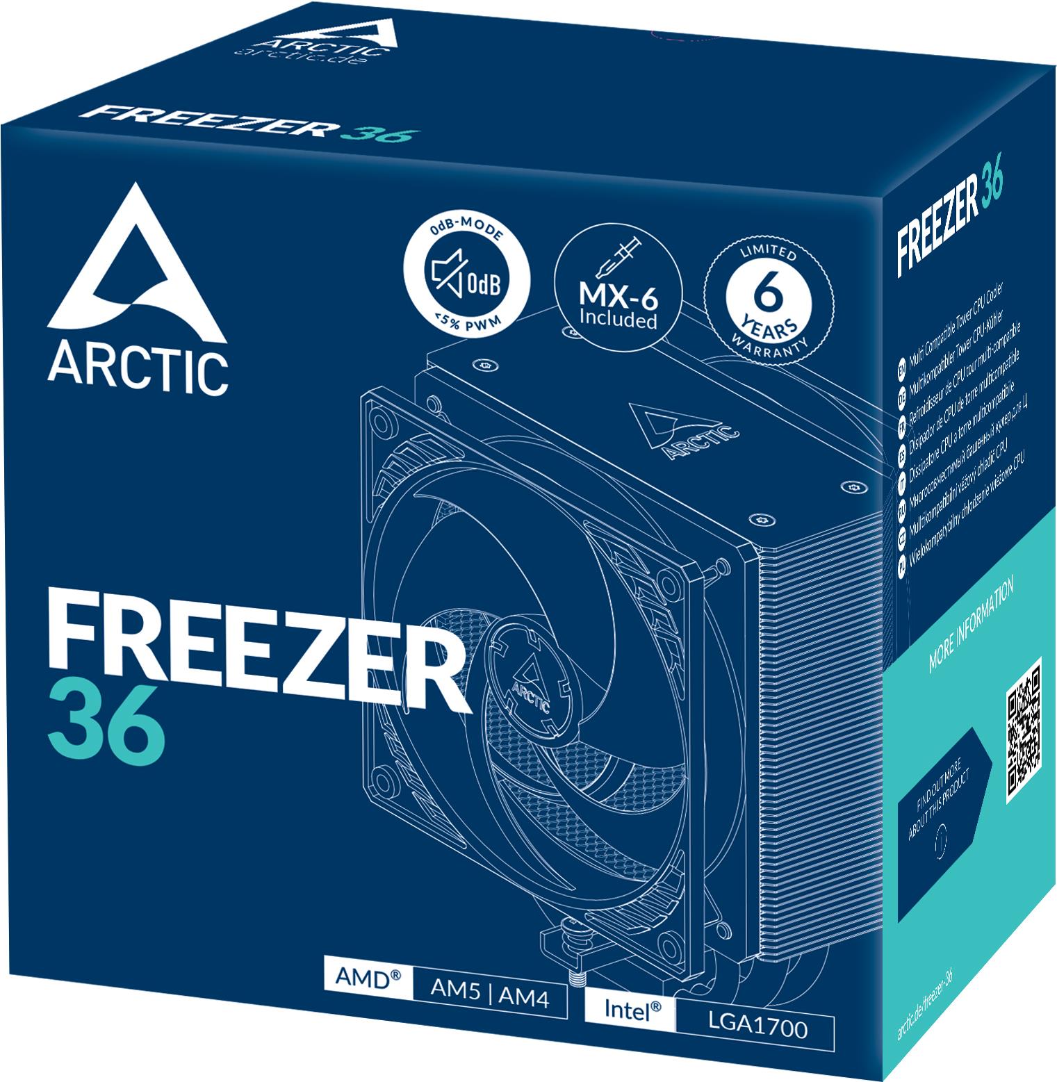 ARCTIC Freezer 36 - Prozessor-Luftkühler - mehrfach kompatibel - (für: LGA1700, LGA1851, AM4, AM5) - Kupfer-Heatpipes mit Aluminium-Kühlrippen - 120 mm - Standard (ACFRE00121A)
