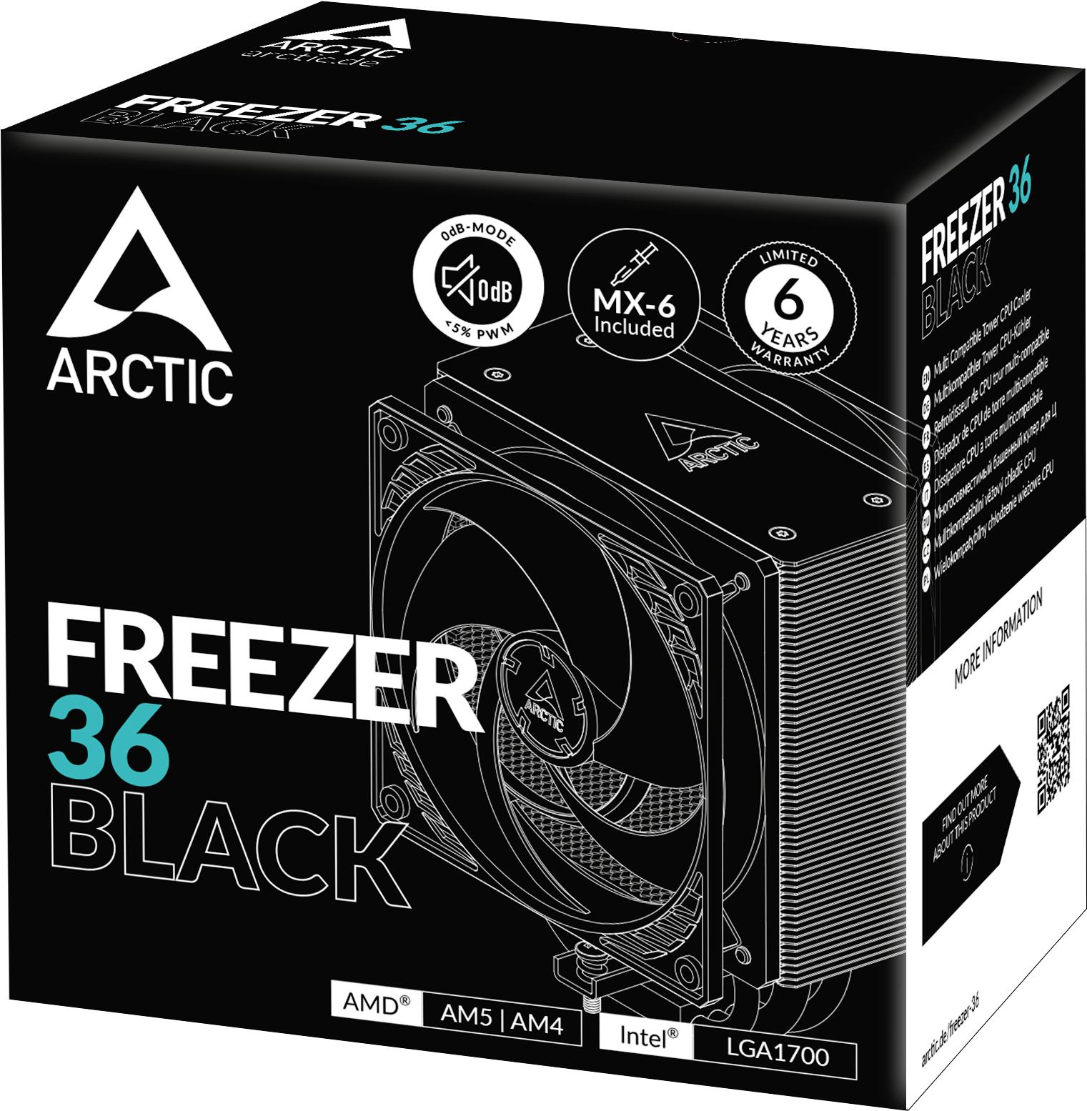 ARCTIC Freezer 36 - Prozessor-Luftkühler - mehrfach kompatibel - (für: LGA1700, LGA1851, AM4, AM5) - Kupfer-Heatpipes mit Aluminium-Kühlrippen - 120 mm - Schwarz (ACFRE00123A)