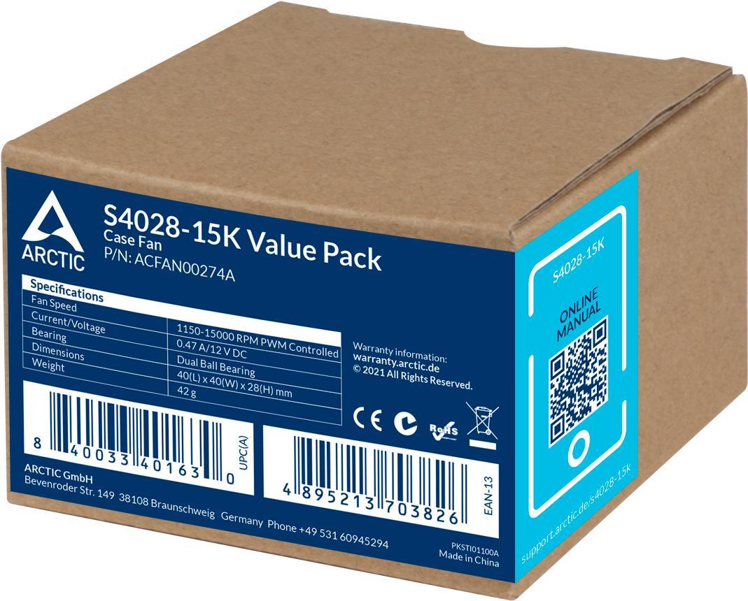 ARCTIC S4028-6K - 40 mm Server Lüfter | Value Pack - Ventilator - 4 cm - 250 U/min - 6000 U/min - 7,1 cfm - 12,06 mü/h (ACFAN00273A)