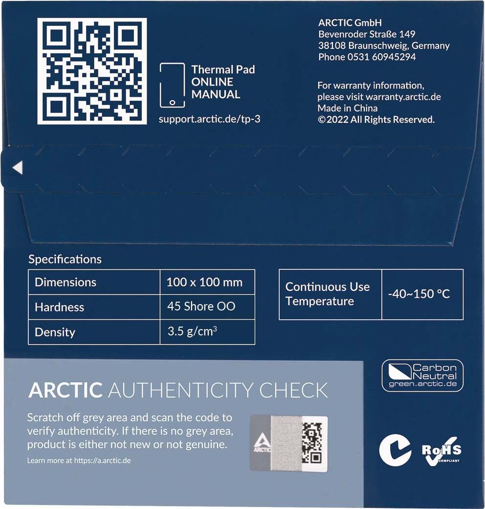 ARCTIC TP-3 Premium Performance Thermal Pad 100 x 100 mm - 1.5 mm (ACTPD00054A)