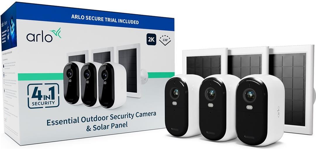 Arlo Essential - 2. Generation - Netzwerk-Überwachungskamera - mit 3 Solarpanel-Ladegeräte