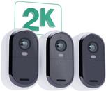 Arlo Essential - 2. Generation - Netzwerk-Überwachungskamera - Innenbereich, Außenbereich - witterungsbeständig - Farbe (Tag&Nacht) - 4 MP - 2560 x 1440 - Audio - drahtlos - Wi-Fi - mit 3 Solarpanel-Ladegeräte (Packung mit 3) (VMK3350-100EUS)