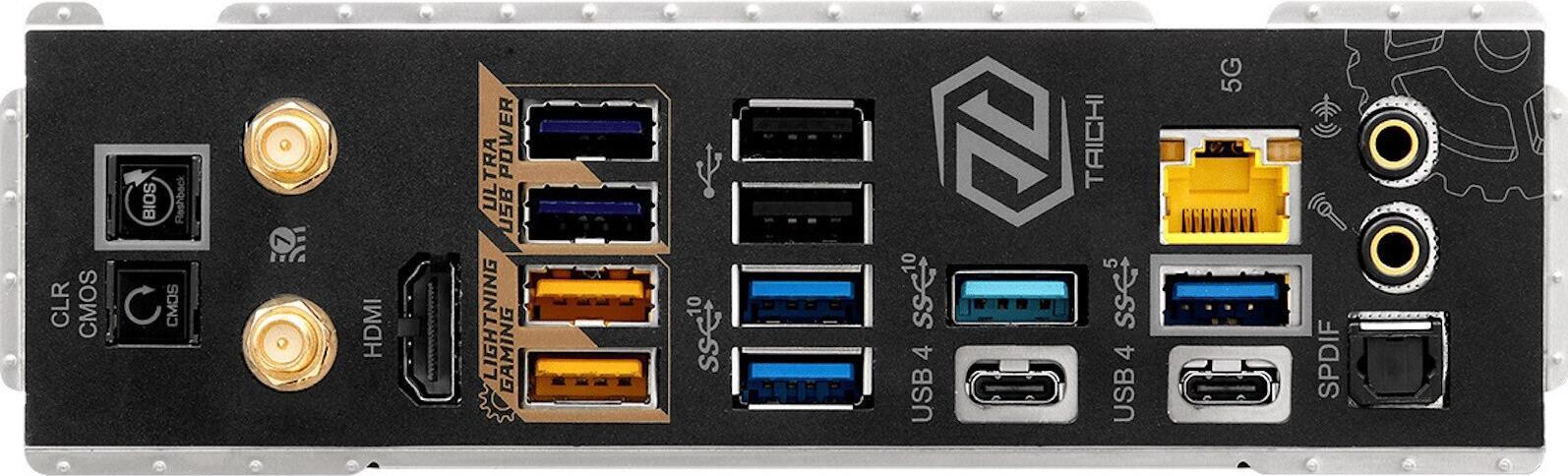 | Schnittstellen | 2 x Antenne 1 x HDMI 1 x SPDIF-Ausgang 2 x USB4 5 x USB 3.2 Gen 2 3 x USB 3.2 Gen 1 2 x USB 2.0 1 x LAN (5Gigabit Ethernet) 1 x Audio Line-Out - Mini-Klinkenstecker 1 x Mikrofon - Mini-Klinkenstecker |
