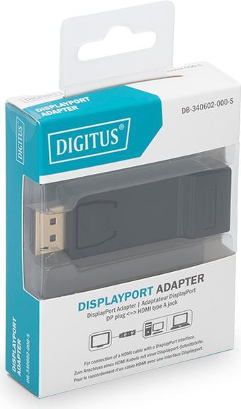 DIGITUS - Videoanschluß - DisplayPort / HDMI - DisplayPort (M) bis HDMI (W) - Schwarz - geformt (DB-340602-000-S)
