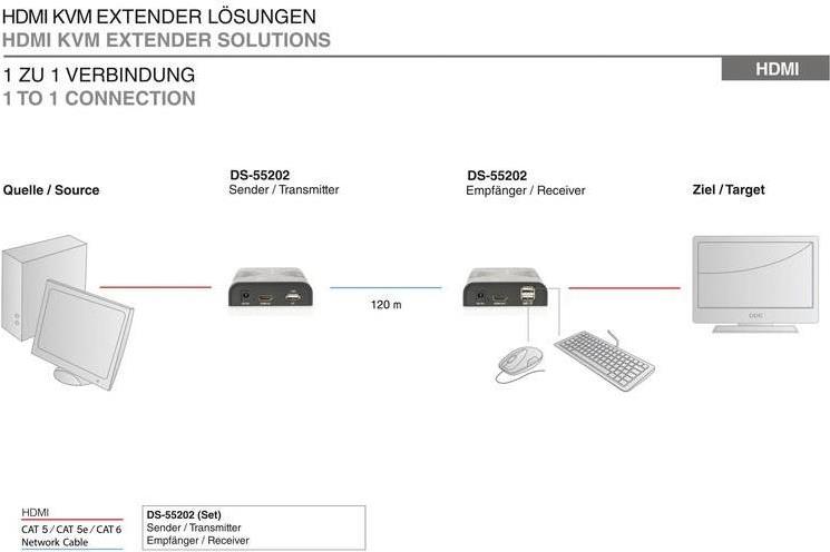 DIGITUS Professional HDMI KVM Extender over IP, Set - KVM-/Audio-Extender - 100Mb LAN - USB - bis zu 120 m (DS-55202)