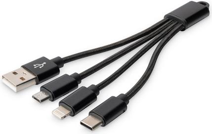DIGITUS 3-in-1 Ladekabel, USB A - Lightning + Micro USB + USB-C, schwarz (DB-300160-002-S)