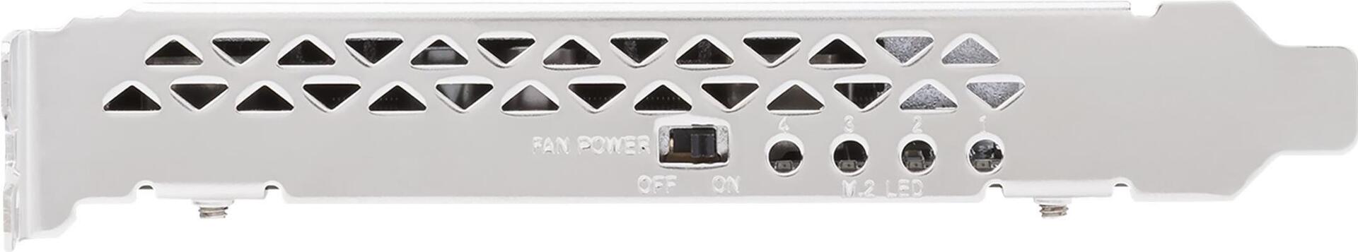 Der Lüfter ist deutlich hörbar, aber per Schalter an der PCI Blende abschaltbar, leider nicht per Software. Allerdings wird er Lüfter bei mir vermutlich nie benötigt, mit zwei SSDs unter Last werden diese bei 20°C Raumtemperatur gerade einmal 36°C warm, da der Kühlkörper schon eine gewisse Masse besitzt.
