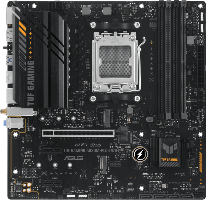 | Produktbeschreibung | ASUS TUF GAMING A620M-PLUS WIFI - Motherboard - micro ATX - Socket AM5 - AMD A620 |