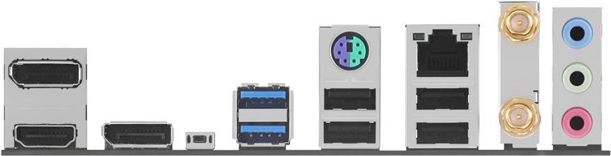 | Schnittstellen | 1 x HDMI 2 x DisplayPort 2 x USB 3.2 Gen 1 4 x USB 2.0 1 x LAN (2.5Gigabit Ethernet) 2 x Antenne 1 x PS/2-Tastatur/-maus 1 x Mikrofon - Mini-Klinkenstecker 1 x Audio Line-In - Mini-Klinkenstecker 1 x Audio Line-Out - Mini-Klinkenstecker |