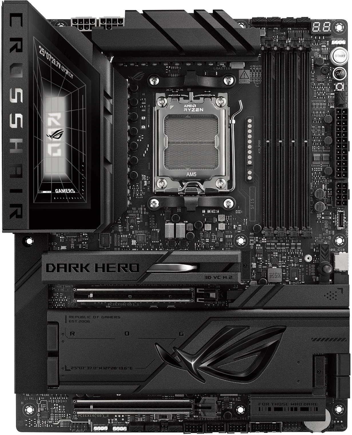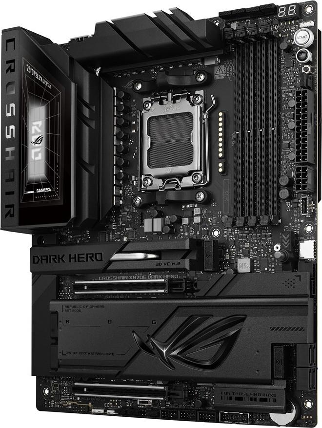 Das ASUS ROG CROSSHAIR X870E DARK HERO-Motherboard wurde für anspruchsvolle Enthusiasten entwickelt und bietet eine Reihe von Funktionen, die jedes System aufwerten. Es unterstützt Ryzen-Prozessoren mit Sockel AM5 und gewährleistet so die Kompatibilität mit der Ryzen 7000/8000/9000-Serie. Gleichzeitig verfügt es über fortschrittliche Speichertechnologie mit Unterstützung für DDR5-SDRAM mit bis zu 9600 MT/s (O.C.). Dieses Motherboard bietet eine beeindruckende Auswahl an Erweiterungssteckplätzen, darunter zwei PCIe 5.0 x16-Steckplätze und mehrere M.2-Steckplätze für schnelle Speicherlösungen.