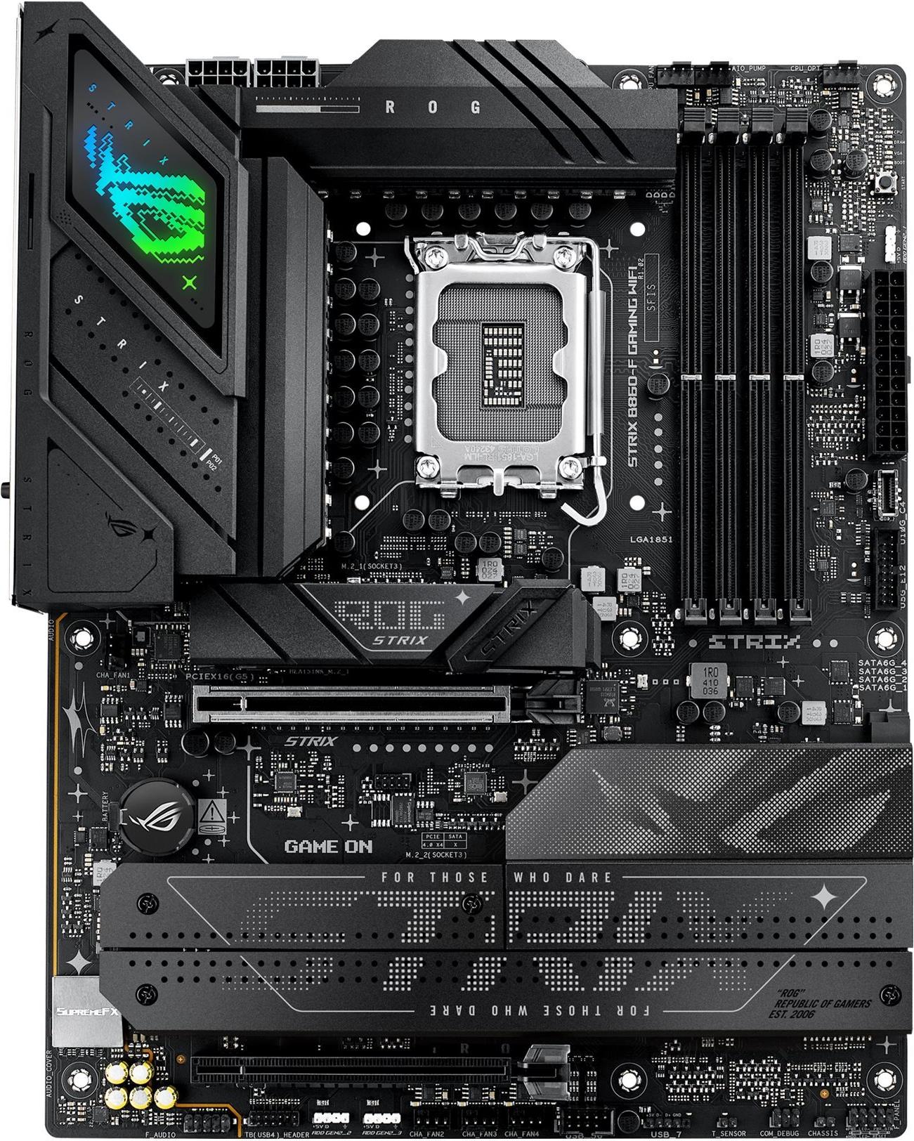 Das ASUS ROG STRIX B860-F GAMING WIFI Motherboard bietet eine robuste Plattform für Gamer und Power-User. Mit Unterstützung für Intel Core Ultra Prozessoren und DDR5 SDRAM bis zu 4533 MHz ermöglicht es ein reaktionsschnelles und leistungsfähiges Computing-Erlebnis. Das Board verfügt über mehrere Erweiterungssteckplätze, darunter PCIe 5.0 x16 und PCIe 4.0, die es Anwendern ermöglichen, fortschrittliche Grafikkarten und andere Peripheriegeräte zu integrieren und so eine ausreichende Konnektivität für aktuelle und zukünftige Technologien sicherzustellen.