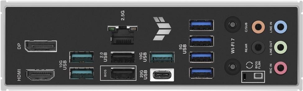 | Schnittstellen | 1 x HDMI 1 x DisplayPort 1 x USB-C 3.2 Gen2x2 3 x USB 3.2 Gen 2 4 x USB 3.2 Gen 1 2 x USB 2.0 1 x LAN (2.5Gigabit Ethernet) 1 x SPDIF-Ausgang 1 x Mikrofon - Mini-Klinkenstecker 1 x Audio Line-Out - Mini-Klinkenstecker 2 x Antenne |