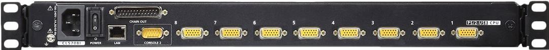 | Schnittstellen | KVM (SPHD-18) 2 x USB (Typ A) 8 x KVM (SPHD-17) Verknüpfungs-Ports (DB-25) Management (RJ-11) Netzwerk (RJ-45) |