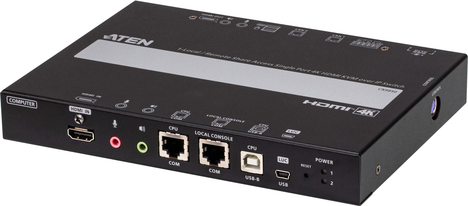 | Produktbeschreibung | ATEN CN9850 - KVM-Switch - Fernzugriff über einen einzelnen Port, 4K, HDMI - an Rack montierbar |