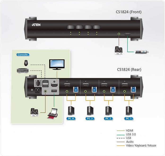 | Produktbeschreibung | ATEN CS1824 KVMP Switch - KVM-/Audio-/USB-Switch - 4 Anschlüsse |