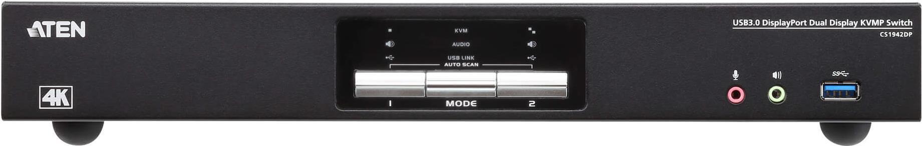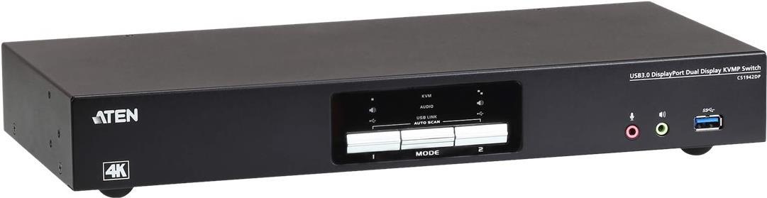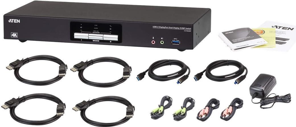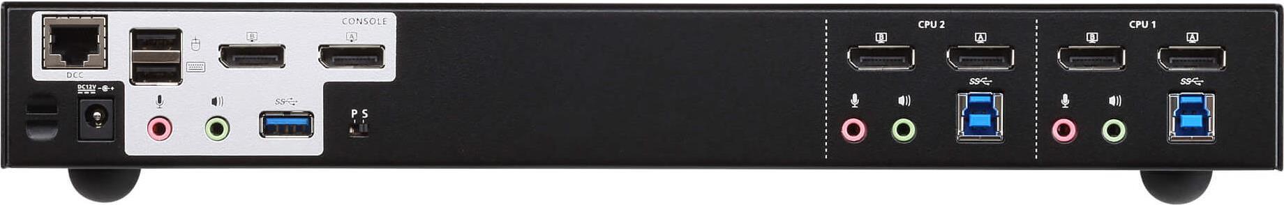| KVM- (Computer) Ports | 2 x USB3.1 Gen1 Typ-B-Buchse (Blau) 4 x DisplayPort Buchse (Schwarz) 2 x 3,5-mm-Audiobuchse (Grün) 2 x 3,5-mm-Audiobuchse (Rosa) |