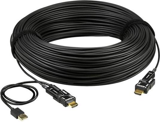 ATEN VE7834A - Highspeed - HDMI-Kabel mit Ethernet - 19 pin micro HDMI Type D männlich zu 19 pin micro HDMI Type D männlich - 60,0m - Geschützter Hybridkupfer/Faseroptik - Active Optical Cable (AOC), unterstützt 4K 60 Hz (4096 x 2160), Plenum (VE7834A)