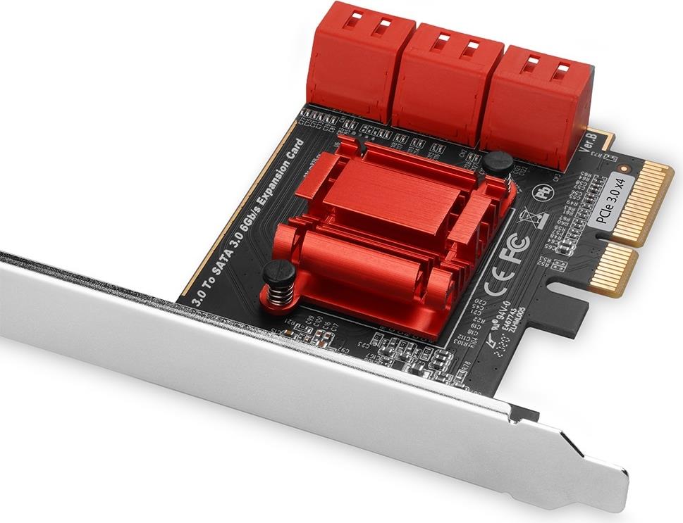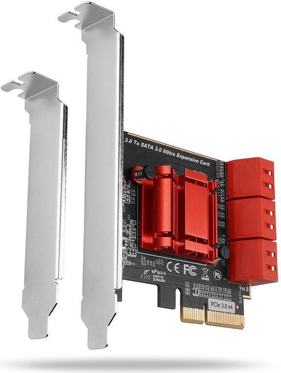 PCI-Express Controller AXAGON PCES-SA6 erweitert den Computer um sechs hochgeschwindigkeits- SATA III Ports mit einer Übertragungsgeschwindigkeit von bis zu 6Gb/s.