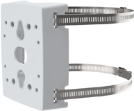 Die Masthalterung AXIS T91B47 ist für den Innenbereich wie den Außenbereich ausgelegt. Sie ist in zwei Ausführungen erhältlich: mit Stahlbändern für Masten von 50 bis 150 mm Durchmesser oder mit Stahlbändern für Masten von 110 bis 400 mm Durchmesser.Die AXIS T91B47 wird mit Bändern aus salzwassertauglichem Edelstahl (SS 316L) und Schrauben des Typs TX30 einfach und sicher befestigt.Für unbewegliche Dome-Kameras oder Bullet-Kameras von Axis erübrigt sich weiteres Zubehör wie etwa Hängemontagesätze. Die Halterung AXIS T91B47 passt an die Rückseite der Kamera und ermöglicht somit kostengünstige Lösungen.