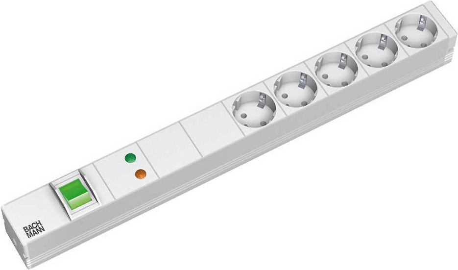 Bachmann - Verlängerungsschnur (Rack - einbaufähig) - Ausgangsbuchsen: 5 - 1U - 48.3 cm (19") - 2 m - Hellgrau