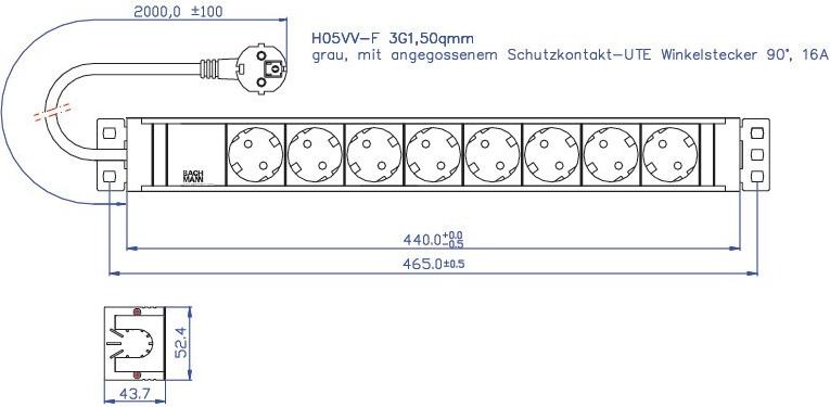 Bachmann - Verlängerungsschnur (Rack - einbaufähig) - Wechselstrom 230 V - 8 Ausgangsstecker - 1U - 48,3 cm (19") (691695)
