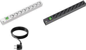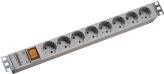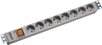 Bachmann 48,30cm (19")-Steckdosenleiste ALU 1HE, 8-fach, lichtgrau RAL7035, Schutzkontakt, 2 m, RAL 7035, mit SchalterInkl. Befestigungswinkel mit Schrauben;Endstücke genietet, nicht öffenbar;Anschlussleitung 2 m HO5VV-F 3G1,50mm² schwarz mit Schutzkontakt-Winkelstecker (333.400)