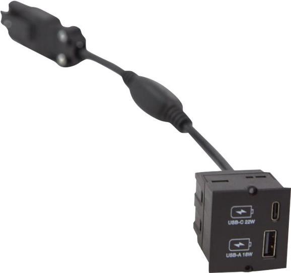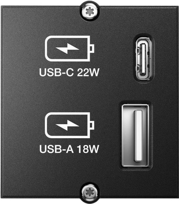 Das Bachmann 917.227 Custom Modul mit 1x USB-C Charger mit 22 W und 1x USB-A Charger mit 18 W kombiniert auf einzigartige Weise einen USB A und USB C Port. Es eignet sich zum Laden von Smartphones und Tablets sowie weiterer elektronischer Endgeräte mit USB-A oder der USB-C-Technologie. Das USB Ladegerät ist einfach und flexibel auch für Nachrüstungen und Upgrades bereits bestehender Installationen geeignet.