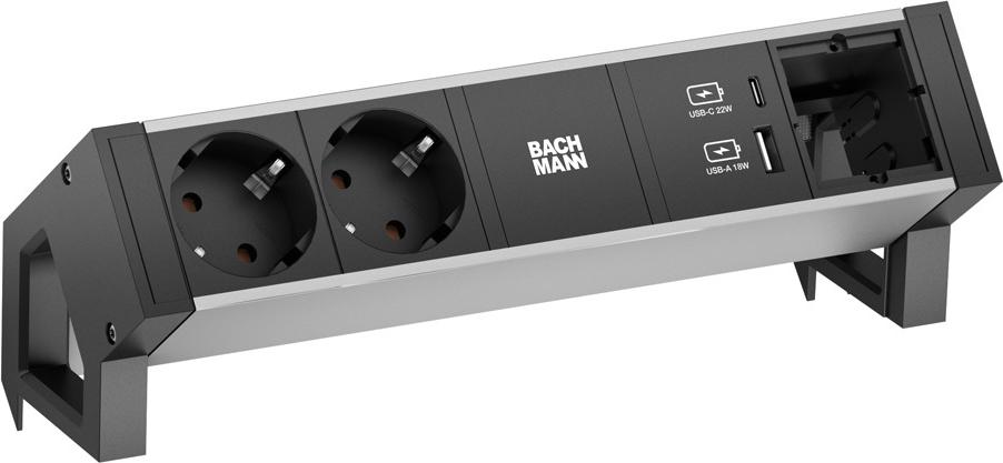BACHMANN 937304 DESK2 ALU BLACK 2xfach 1xCM 1xUSB A&C22W (937304)
