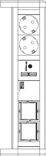 | Besonderheiten | Aluminiumgehäuse, Steckdosen um 35° gedreht, Berührungsschutz, 2 kundenspezifische Module |