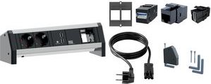 DESK Energieleisten als Auftischeinheit ist ideal für Arbeitsplätze mit Kombination aus Stromanschlüssen und Daten- oder Medientechnikmodulen.