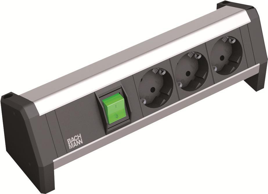 Bachmann DESK - Verlängerungsschnur - Wechselstrom 230 V - output connectors: 3 ( CEE 7/4 (SCHUKO) ) - 3 m - Deutschland - Schwarz